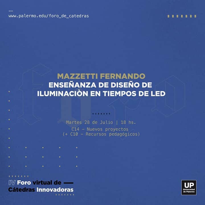 Participación como expositor en el congreso y Foro (Virtual) De Cátedras Innovadoras 2020 de la UP. La Semana (virtual) Internacional de Diseño 2020 se realiza entre el 27 y el 31 de julio y es de acceso gratuito para todos sus inscriptos.