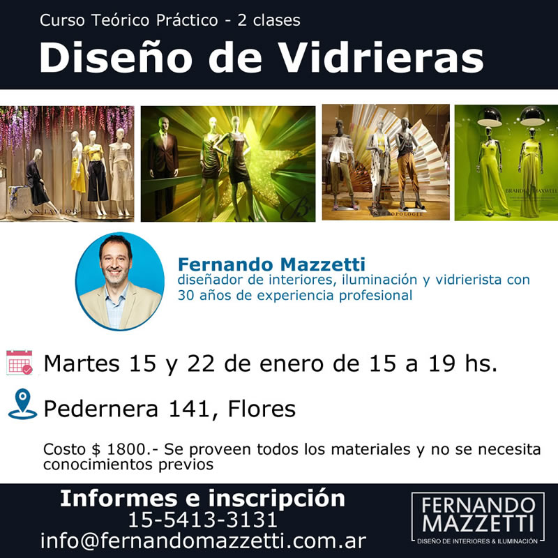 DetailsTaller de Diseño e Iluminación de Vidrieras en Escobar (sede Decomobi) el 16 de julio a cargo de Fernando Mazzetti , Diseñador de interiores e iluminación. Vidrierista con más de…